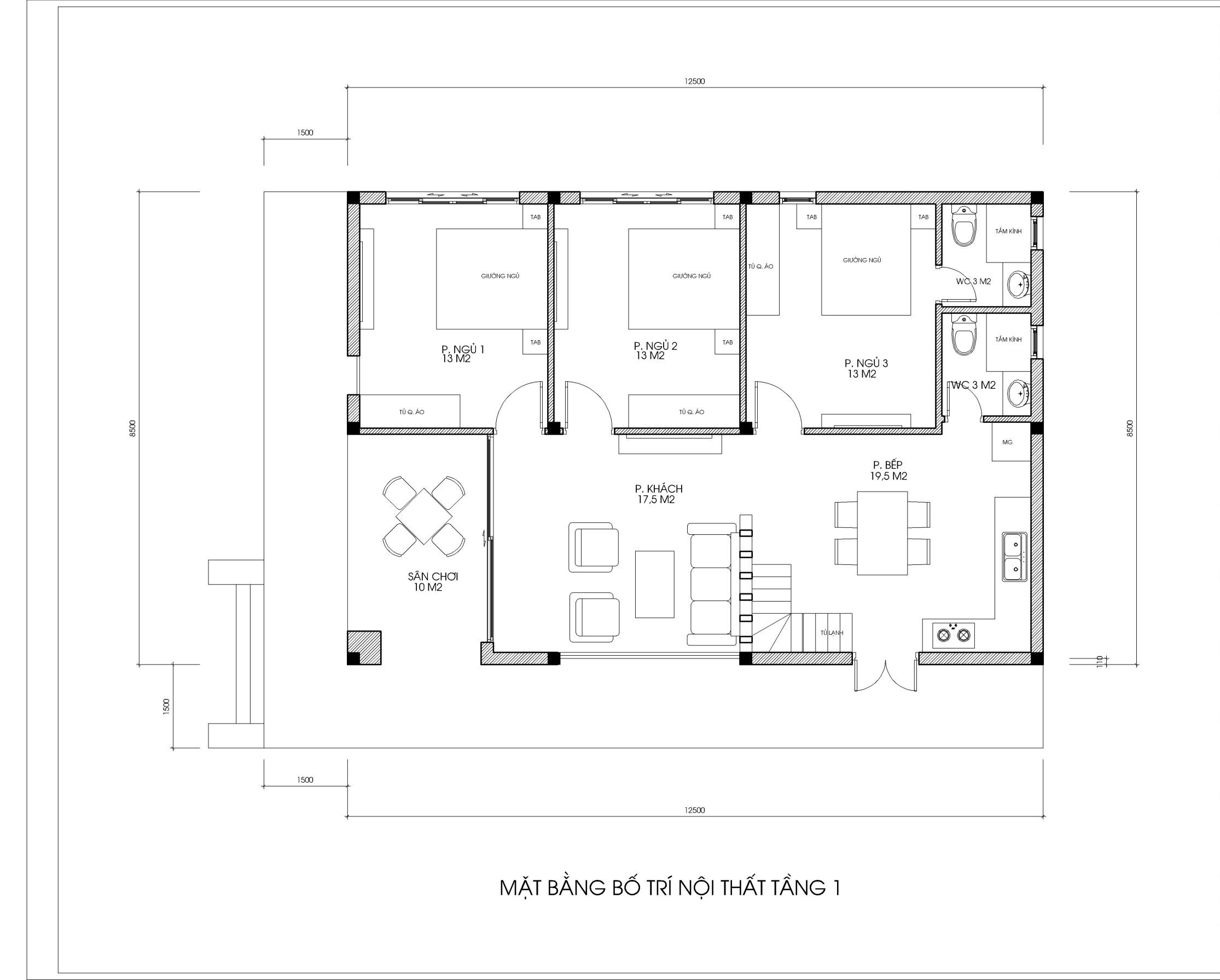 MẶT BẰNG TẦNG 1: